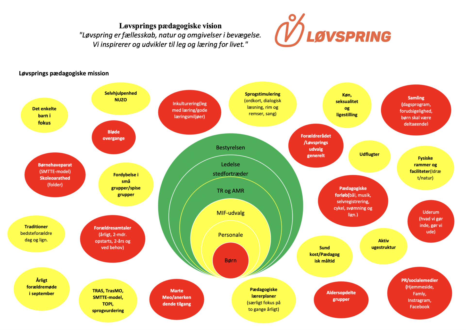 “Løvspring er fællesskab, natur og omgivelser i bevægelse. Vi inspirerer og udvikler til leg og læring for livet.”