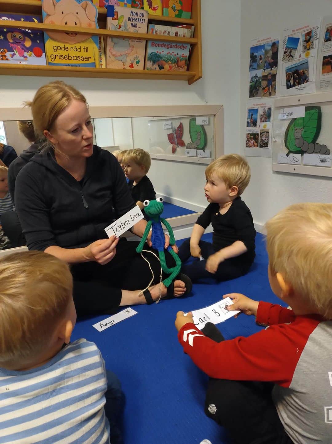 Det er vigtigt at pointere, at vi på ingen måde skolificerer børnene eller læringsrummet med ordkort – vi praktiserer det indenfor fagbegrebet indkulturering af teoretikeren Kjeld Kjertmann.